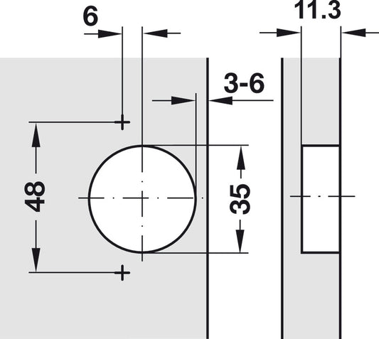 Inset hinge, 105 degree, with or without soft close, 3D adjustable